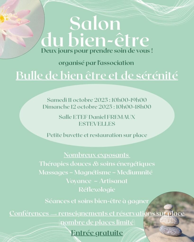 J’ai le plaisir de vous informer que je serai présente au Salon du Bien-être à ESTEVELLES (62) en qualité de Médium !